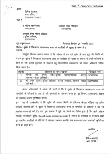 अब सरकार ने नोडल अधिकारी भी नियुक्त कर दिया है। सरकार ने राज्य के वहां फंसे छात्रों की जानकारी और सुरक्षा के के लिए पुलिस उपमहानिरीक्षक कानून व्यवस्था पी. रेणुका देवी को नोडल अधिकारी और प्रमोद कुमार पुलिस अधीक्षक कानून व्यवस्था को सहायक नोडल अधिकारी बनाया गया है।