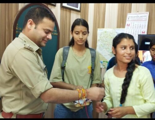 इस अवसर पर सलोनी, खुशी, सोनम, स्मिता, राधिका, नीधि, दीपिका, कोमल, स्वेता आदि बहनों द्वारा राखियां बाँधी गयी।